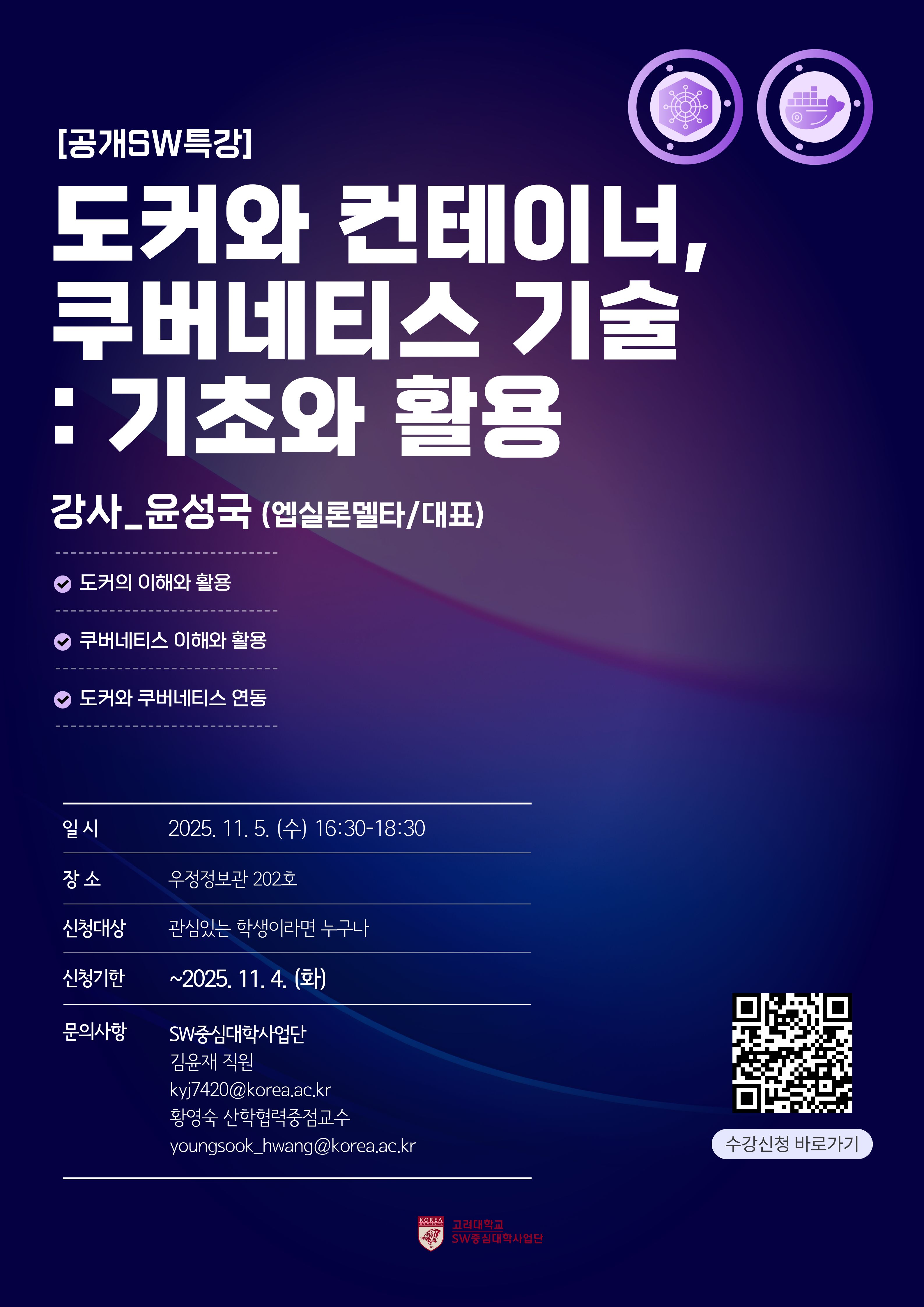 - 도커와 컨테이너, 쿠버네티스 기술에 관심이 있는 고려대학교 정보대학 학생이면 누구나